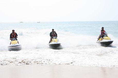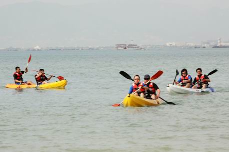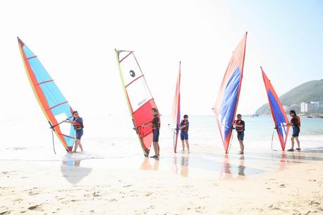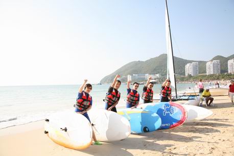 来自北京的销售团队在三亚欣航户外俱乐部定制的户外活动专案中,参与了帆船、帆板、摩托艇、独木舟、潜水、