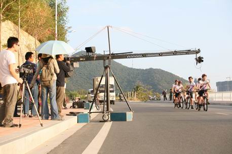 骑行的专业培训活动,并由三亚欣航提供12米摇臂、摄像机拍摄录制完成团队户动活动专片