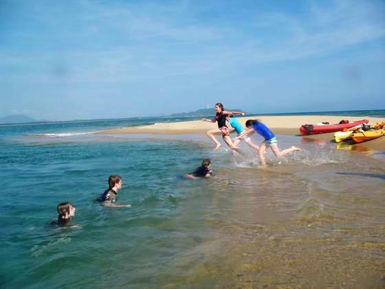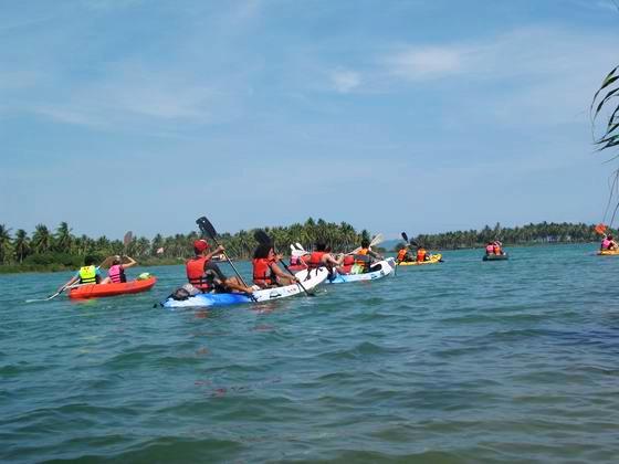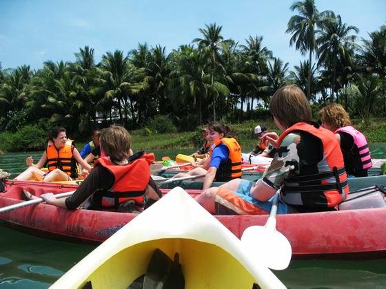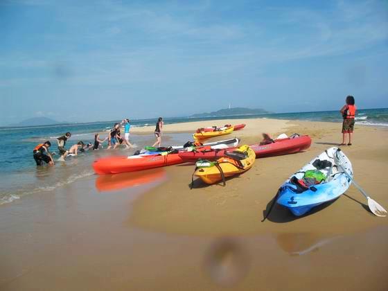 来自全球各地的国际学校学生在三亚欣航独木舟拓展基地进行独木舟培训、海岛探险生存活动