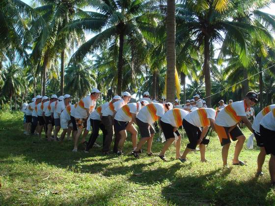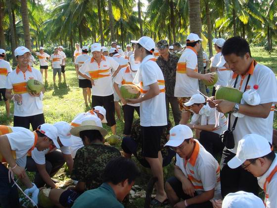 2009年11月9日,九阳股份有限公司员工在三亚欣航独木舟拓展基地举行团队户外拓展培
