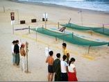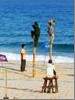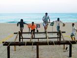 选出两队员拉起吊在空中的网篮,将椰子投入对方网篮直至坠落。 |