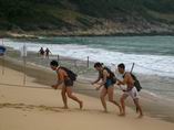 轮流由队员通过障碍运输水,最先积满容器完成任务队伍获胜。 |