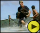 队员手被绑住,在其他队友的帮助下,通过各种障碍到达终点。 |